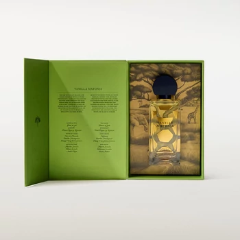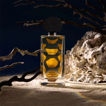 A fényes hold alatt egy sziget őriz egy rejtett öblöt, amely csak apálykor tárul fel. A kristálytiszta vízből fekete sziklák emelkednek ki, körülöttük a halak ékkövekként csillognak. Egy magányos fehér baobab magasodik az ég felé, ágai összefonódnak a csillagokkal. A sós, fűszeres, vaníliával telt levegő álomszerűen öleli körbe a szigetet. Ez az illat a madagaszkári vanília szépségének tisztelgése – a világ egyik legnemesebb alapanyaga előtt. Nyitányában Fleur de Sel friss sóssága idézi meg a napcsókolta bőrt, majd fahéj, rózsaszín bors (Mauritius) és szerecsendiómelengetik az érzékeket. A komorosi ylang-ylang krémes, fénylő virágosságot ad hozzá. Ahogy az illat mélyül, a történet sötétebbé válik: mirha és olibanum (Szomália) olvad össze a mély, sötét ámbrával. A fűszeres, sós, vaníliás levegő álomszerűen borítja be a holdfényes szigetet.